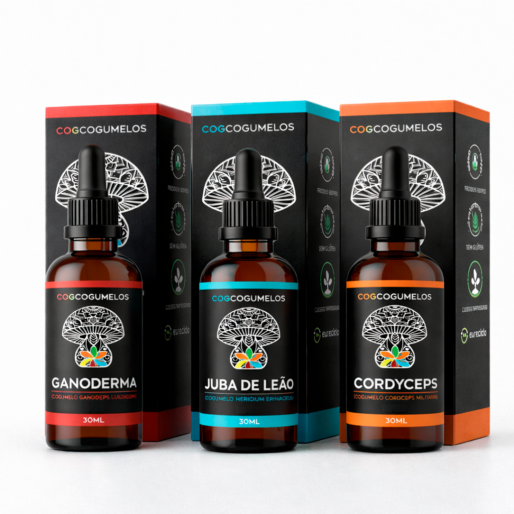 Este kit reúne três extratos de cogumelos amplamente utilizados em diversas culturas ao longo da história: Juba de Leão (Hericium erinaceus), Cordyceps (Cordyceps militaris) e Ganoderma (Ganoderma lucidum). Cada um possui características únicas e tem sido tradicionalmente consumido de diferentes formas ao redor do mundo.